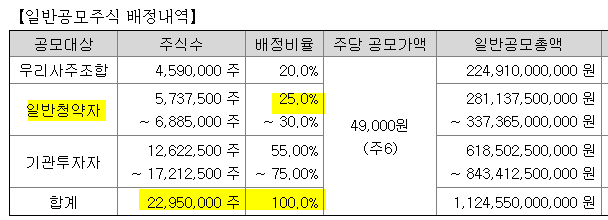 개인투자자에게 할당된 청약 물량은 2295만 주의 25%인 573만 7500주