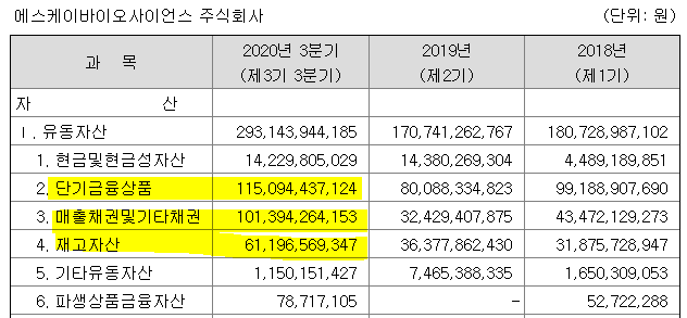 당좌자산이 2319억, 재고자산이 611억으로 19년 대비 많이 증가했습니다.