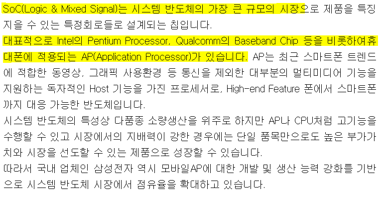 바로 SoC와 CIS인데요. 사업보고서에 SoC와 CIS에 간략한 설명이 있습니다.