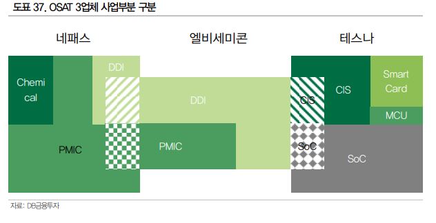 테스나는 SoC 46%, CIS 26% 매출 비중을 가지고 있습니다.