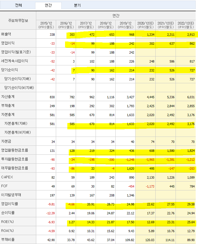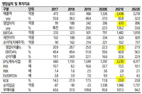 최근 애널 리포트에서는 21년 큰 폭의 매출 성장을 예측하고 있습니다.
