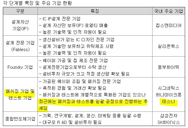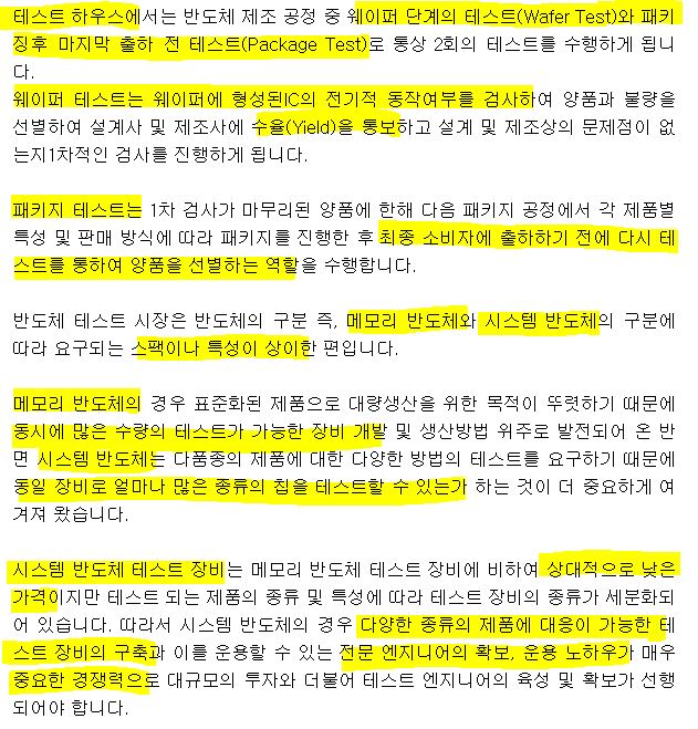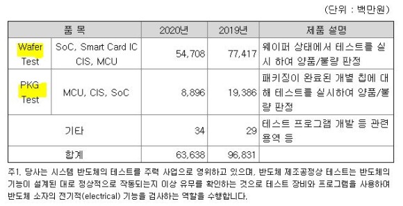 테스나는 반도체 후공정업체로 웨이퍼 테스트와 패키지 테스트를 사업 영역으로 운영 중입니다.