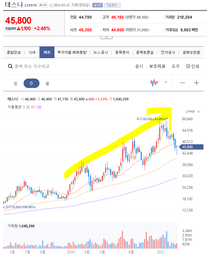 작년부터 파운드리 투자 등의 이슈로 테스나 주가는 꾸준히 상승하고 있습니다.