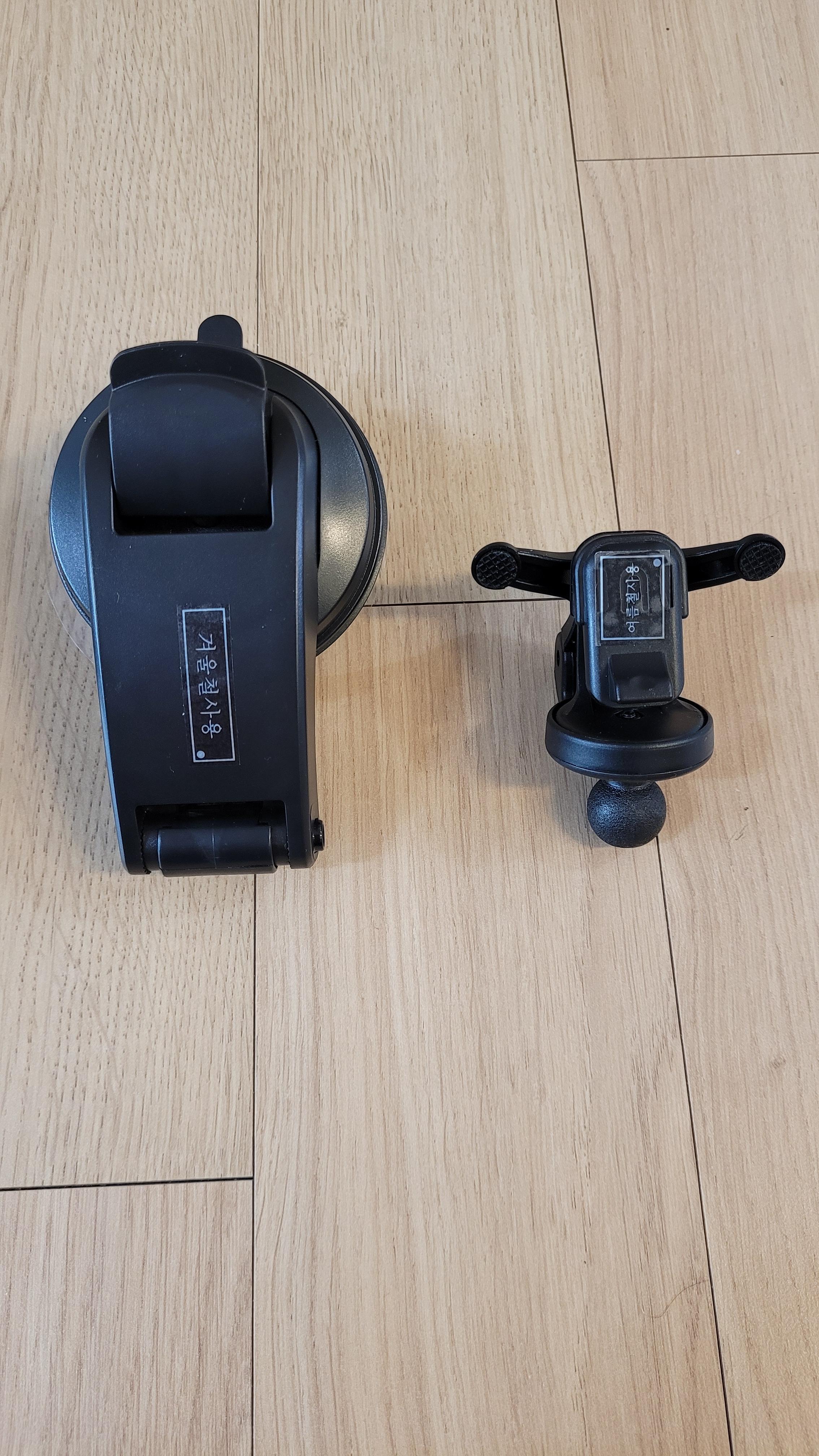 흡착식 거치대는 겨울에 사용하고 송풍구 거치대는 여름에 사용하라고 스티커가 붙어 있네요.