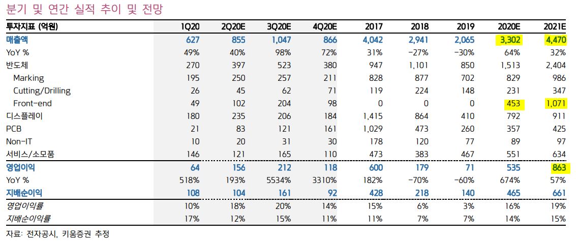 또한 반도체 PLP(Panel Level Package), 신규 패키징 기술 개발에 따른 레이저 드릴링 장비도 주요 매출 요소가 될 것으로 추정됩니다.