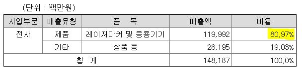이오테크닉스는 여러 장비를 제조하여 판매하고 있는데, 사업보고서에는 제품별 매출 비중이 상세히 설명되어 있지 않습니다.