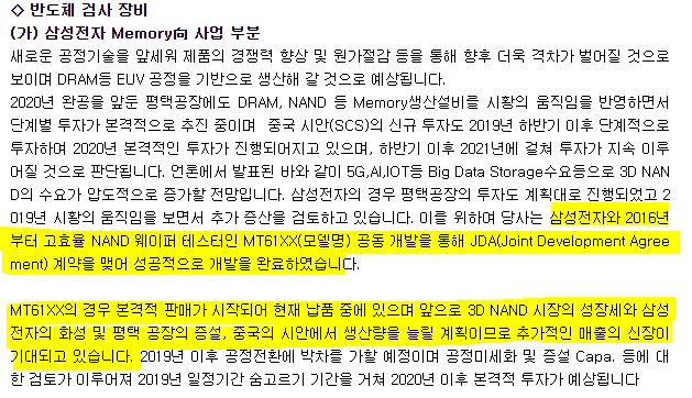 차세대 Tester를 개발한다고 나와있는데, 아마도 삼성전자와 공동개발을 하고 있지 않을까요?