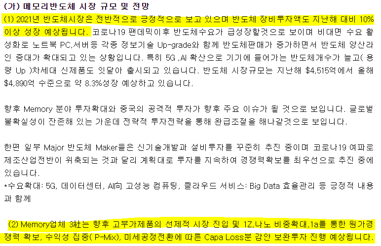 삼성전자, SK하이닉스 DRAM/NAND 투자 관련 뉴스를 계속 확인할 필요가 있겠습니다.