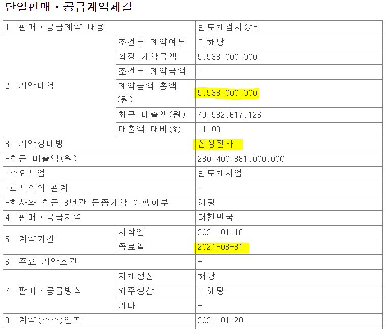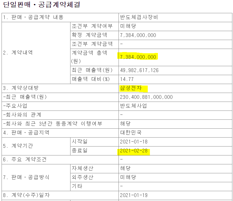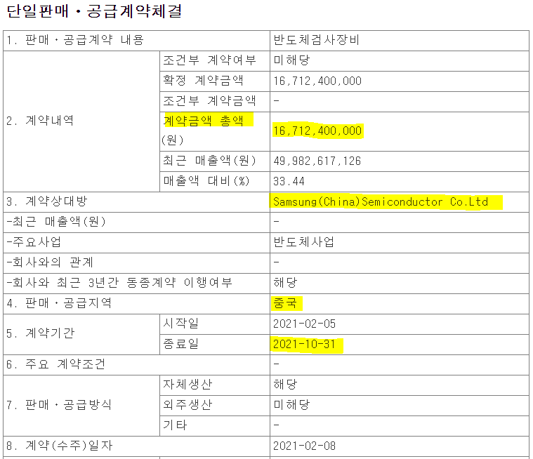 아직 SK하이닉스와 삼성전자향 DRAM 장비는 아직 공시가 없는 것 같습니다.