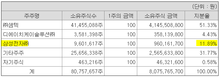 삼성전자와 20여 년 가까이 납품을 하고 있다는 것은 회사의 기술력이 뒷받침되어 야 한다는 의미일 테고 삼성전자가 투자도 했으니 회사의 경쟁력 저하를 염려할 필요는 없을 것 같습니다.