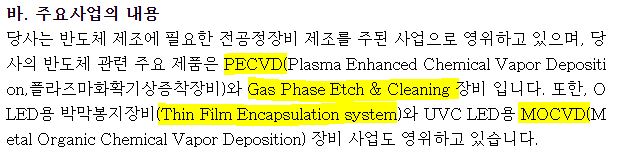 사업보고서에 PECVD 장비를 만든다고 나와 있는데, ACL PECVD 장비와 ARC PECVD를 만드는 것으로 알려져 있습니다.