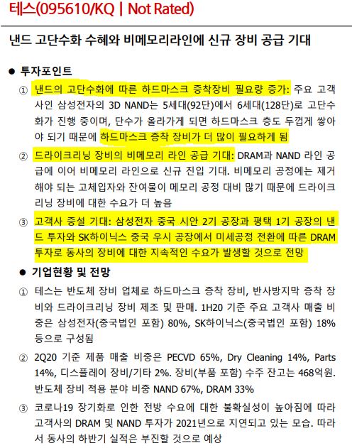 고객사는 삼성전자(매출비중 80%)와 SK하이닉스(매출비중 20%)입니다.