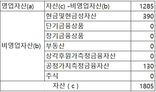 순영업자산이 순비영업자산보다 크므로 비영업자산을 팔아 돈을 충당할 필요 없는 재무상태로 보입니다.