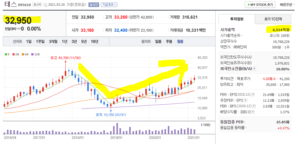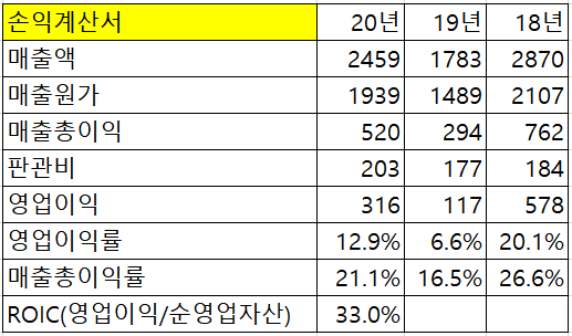 21년 영업이익 550억 ~ 650억, 당기순이익 500억~600억 가정하면 현재 시가총액 6500억은 비싼 상태는 아닌 것 같습니다.