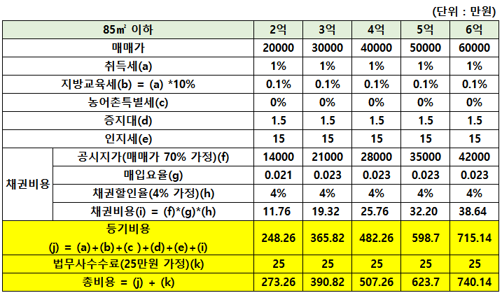 아파트 등기비용 계산식