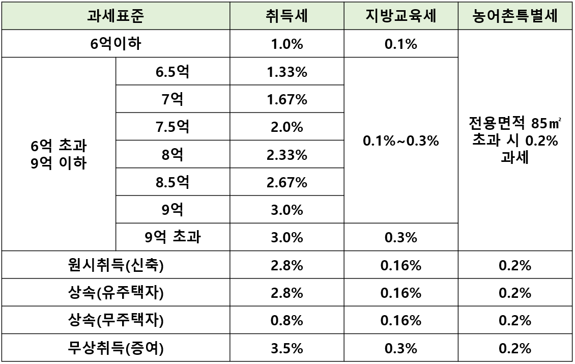 6억~9억 원 구간 주택 유상거래 취득세율은 20년부터 적용되었습니다.