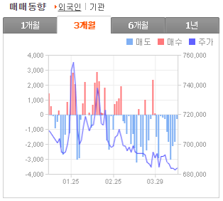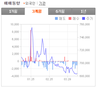 LG생활건강우 주가는 최근 3개월 동안 외국인이 계속 매도하고 있습니다.
