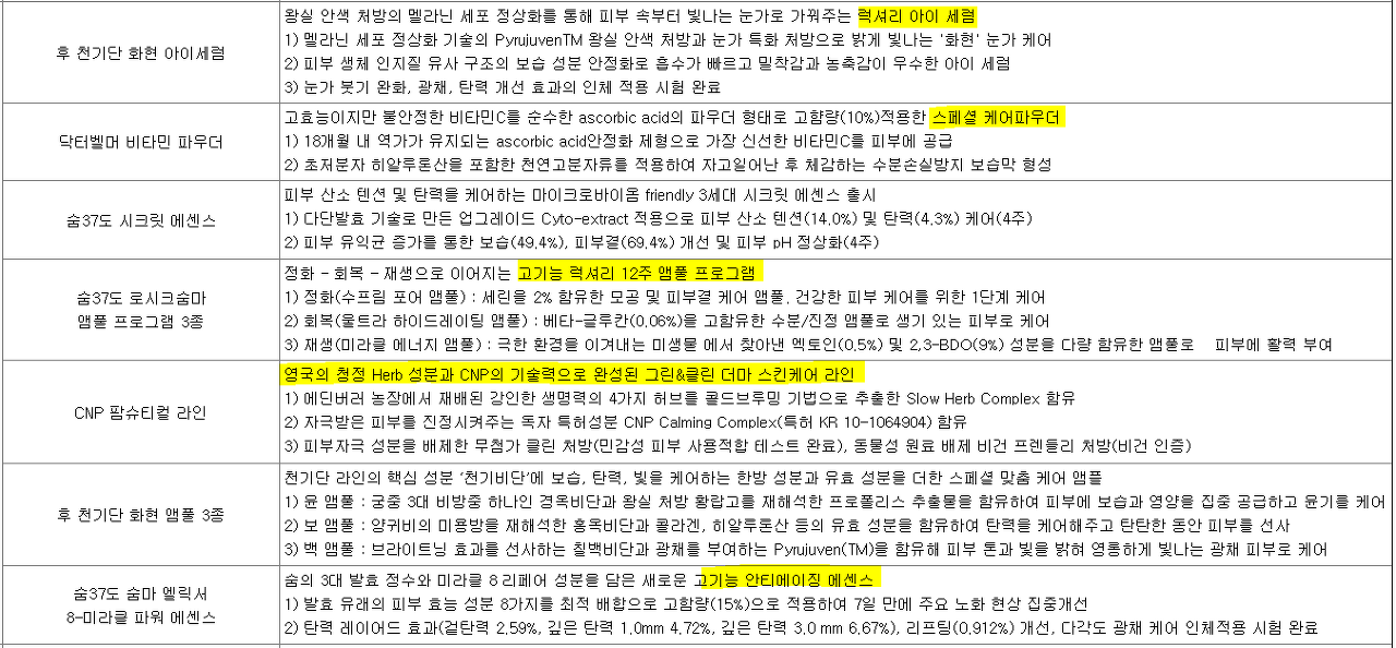 화장품 부문은 럭셔리, 고기능성 화장품을 계속 출시하고 있네요.
