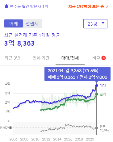 19년 12월말 23평 실거래가 2억 6천 --> 21년 4월 22일 23평 실거래가 3억 8천