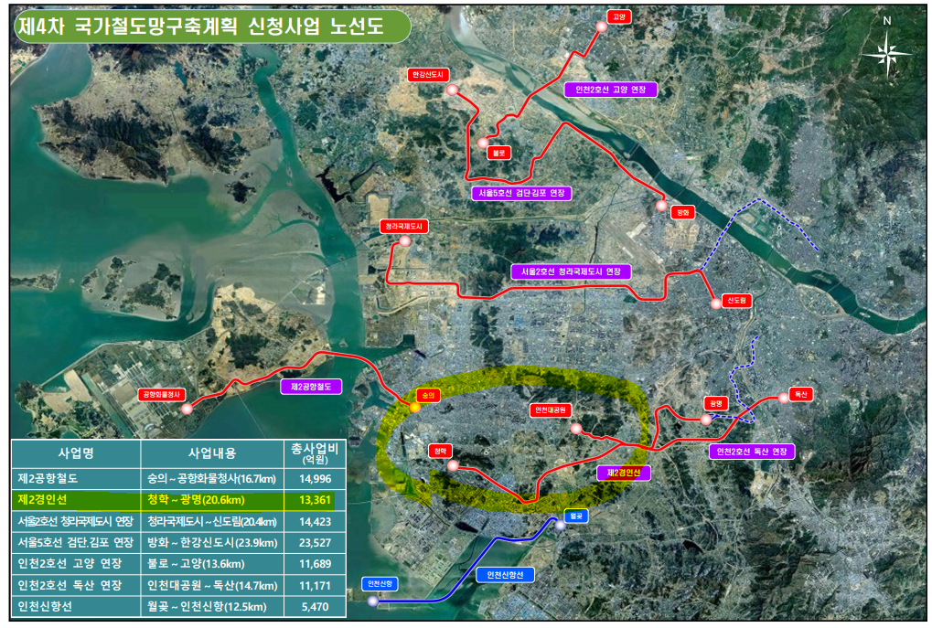 21년 4월 현재 제 4차 국가철도망구축계획에 제2경인선 사업이 발표되었습니다.