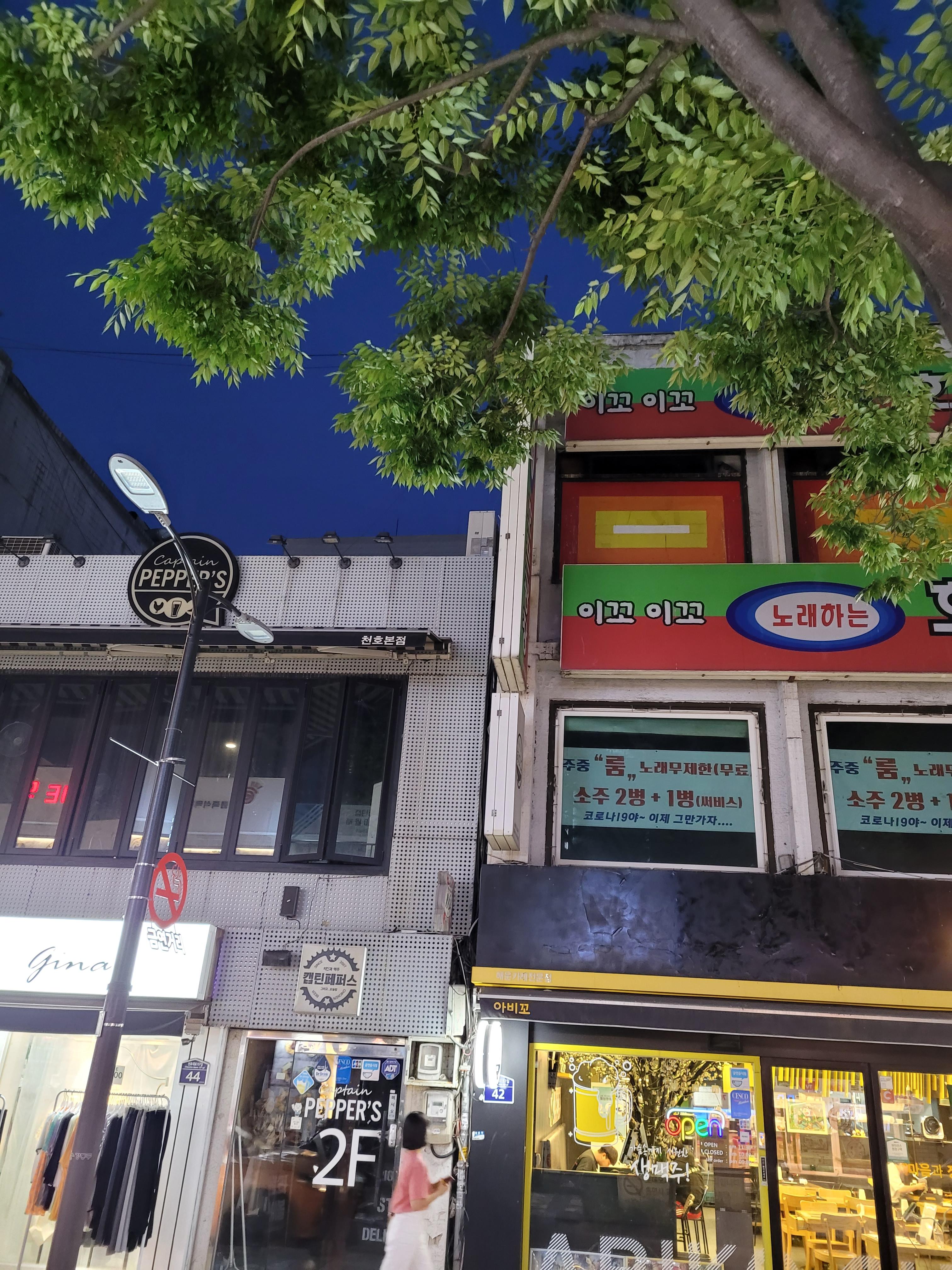 노래연습장은 불이 꺼져 있고 2층에는 새로운 술집이 들어왔음..